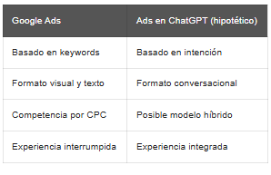 Diferencia entre Google Ads y posibles ChatGPT Ads